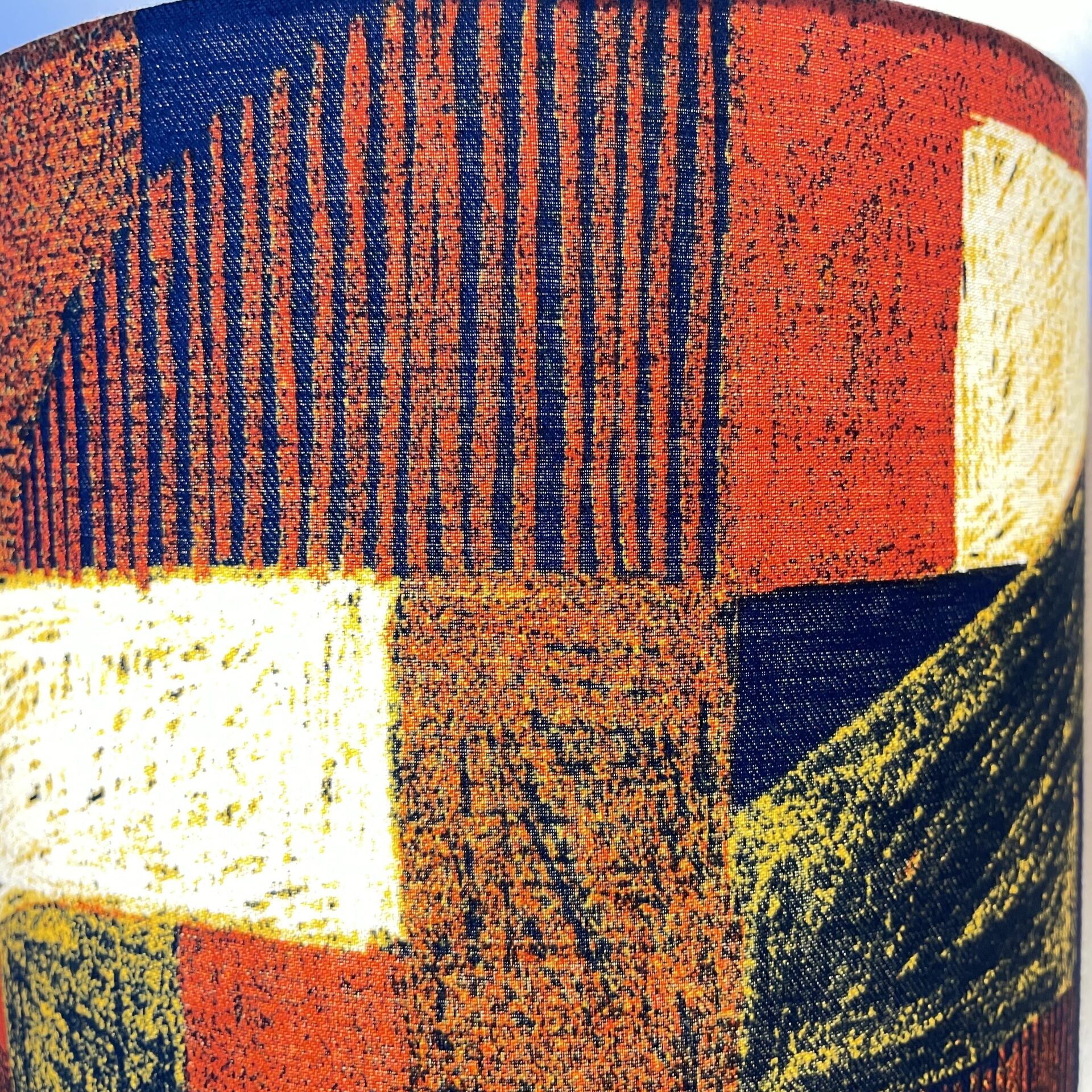 Die Leuchte basiert auf dem Design einer japanischen Textildesignerin, deren Entwürfe in Pastellkreide von Hand gezeichnet werden. Entstanden ist ein faszinierendes Spiel aus roten, gelben und blauen Primärfarben, die sich in einer groben, beinahe skizzenhaften Struktur begegnen. Runde und eckige Formen treffen hier in lebendiger Spannung aufeinander – ein Muster, das an die Ausdruckskraft der Art Brut erinnert und gleichzeitig eine feine gestalterische Balance bewahrt.